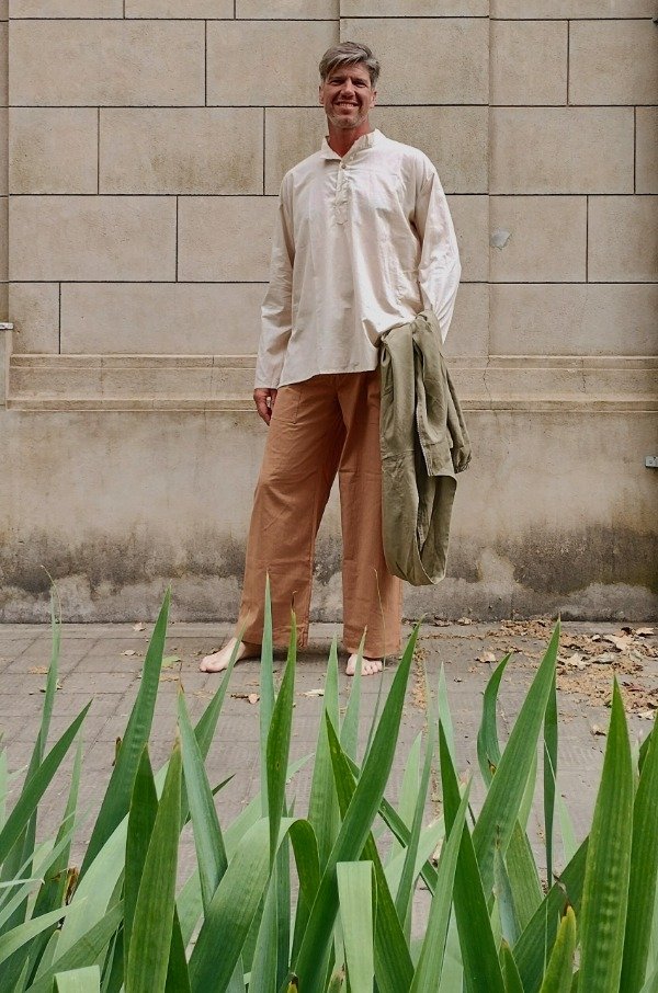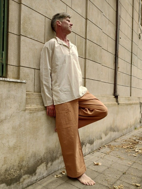 Esta camisa tiene historia, no sé si es el lugar para contarles, lo que sí puedo decir es que después de muchos años encontré un harapo que guardaba desde que estuve en India, era esta camisa, había llegado el momento de hacerla, ahora con todo el taller en marcha, suerte que la guardé, que confíe que llegaría el momento.