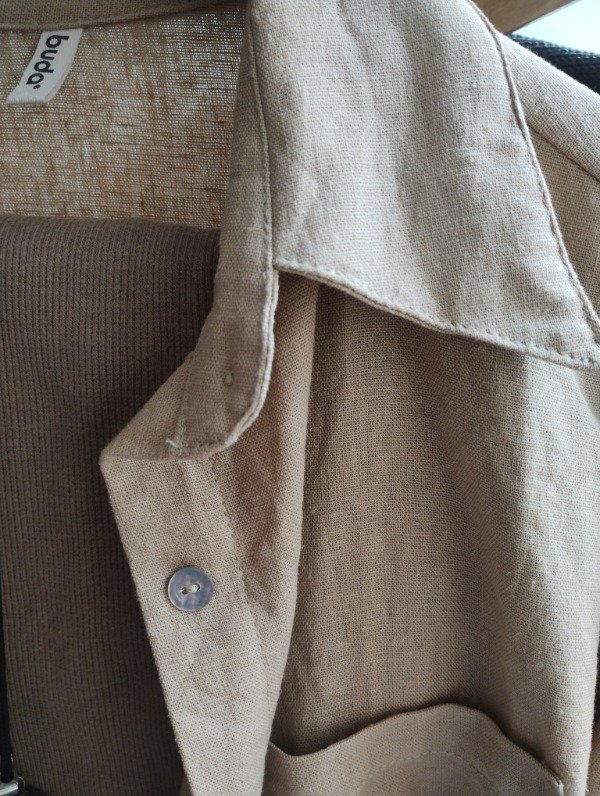 Esta prenda está confeccionada con lino de algodón (55% lino 45% viscosa). La tela está prelavada para evitar que se encoga o deforme la prenda.