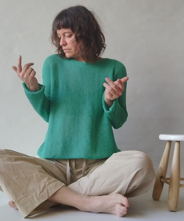 Así como la ves, simple, delicado y cómodo es el suéter simple de hilo.